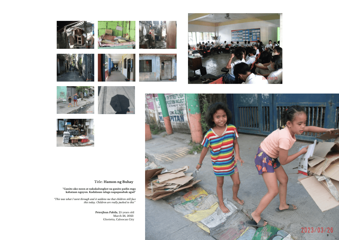 Those who say that the young people in the poor neighbourhoods in Bagong Silang are lazy or good for nothing have not known the depths of the experience of young persons like Bren. At the age of 10, he has already trodden the streets of Manila with his father selling pails and wash bins to make ends meet. While other kids his age are supposed to be hanging out with friends or spending time at school, he has already learned to endure the heat and hunger to earn a living. The eldest in a brood of five, he detested the way others looked down upon him and his family. Growing up in life of deprivation, he believes that being poor does not make someone a lesser person. He felt bad that nobody would give them respect anymore. His longing to get himself out of that hard life has consumed his young mind. He eventually learned to be tough, believing that to survive, one must fend for oneself and claw back at those who judge and condemn those who were unlucky enough to be living on the margins.